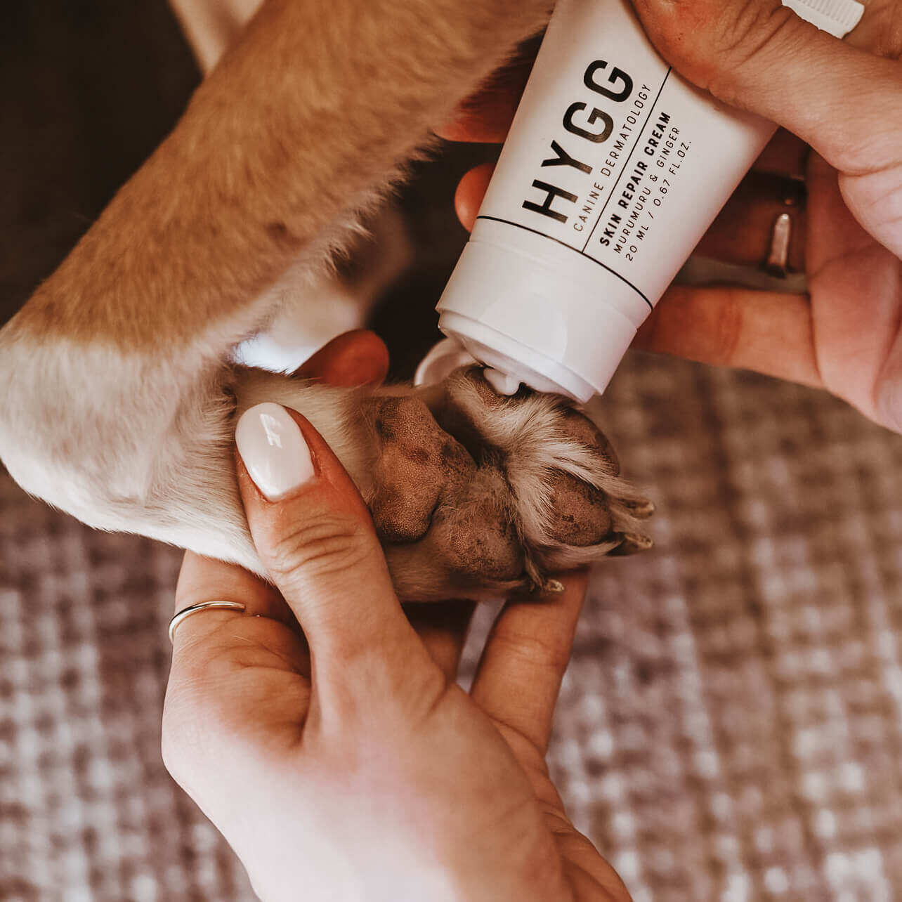 Naudojimas: nedidelį kiekį tepkite ant švarios, sausos odos. Švelniai įmasažuokite į pažeistą vietą, kol visiškai įsigers. Galima naudoti tiek dažnai, kiek reikia – ant letenų, nosies, pilvo ir sudirgusių odos vietų. Tinka visoms veislėms ir visų tipų odai.